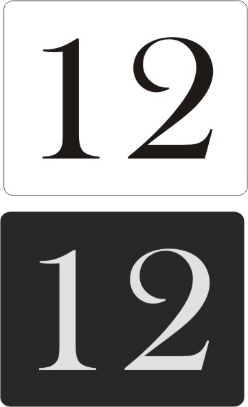 Numerokilpi. Saatavana valkoisella tai mustalla pohjalla. Valkoisessa kilvessä numero on mustalla, mustapohjaisessa kilvessä numero on valkoisella tai hopean- värisenä.