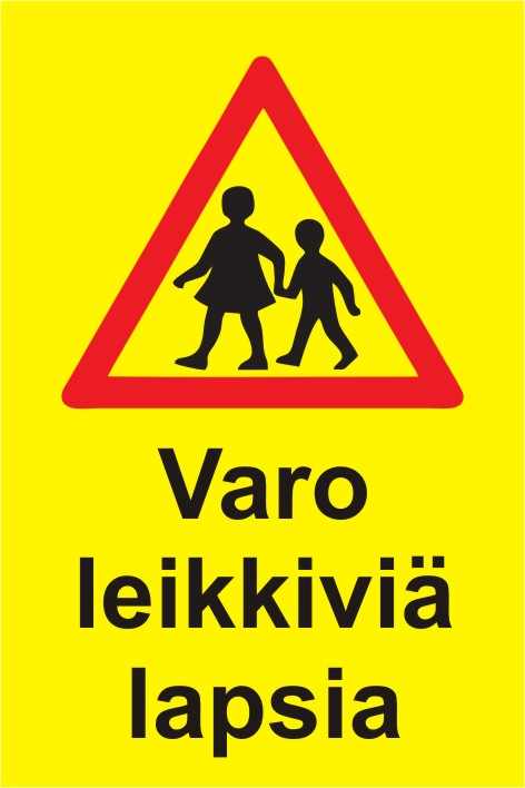 Keltaisella pohjalla musta teksti. Valitse kilven koko ja materiaali lisävalikosta.