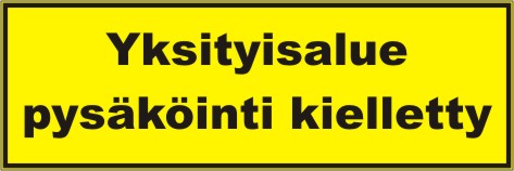 Keltaisella pohjalla musta teksti. Valitse kilven koko & materiaali lisävalikosta.